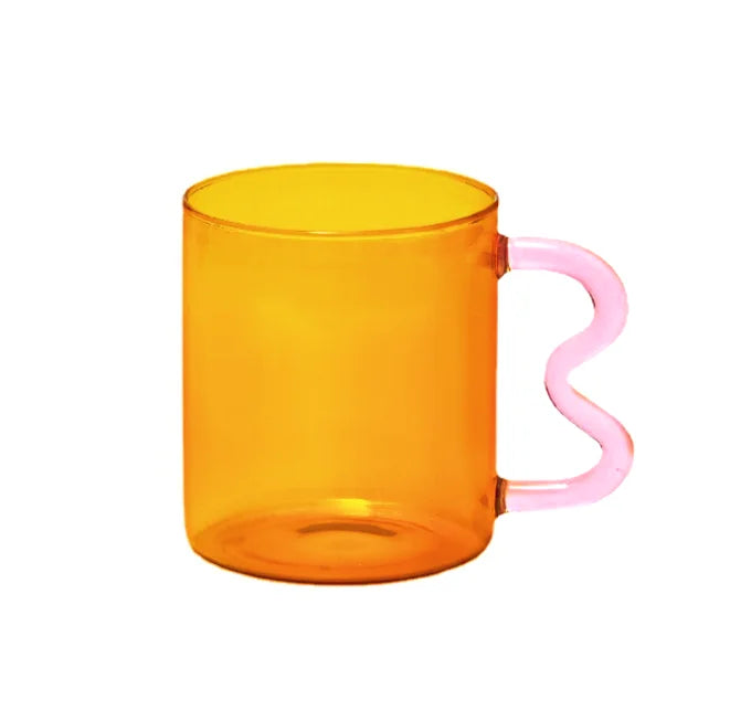 Add charm to your daily coffee rituals with this handmade colorful glass coffee mug. Its unique wave design and vibrant, colorful handle make every sip a delightful experience. Perfect for hot beverages like coffee, tea, or even a calming evening brew, this 300ml tumbler is a stylish addition to your drinkware collection.